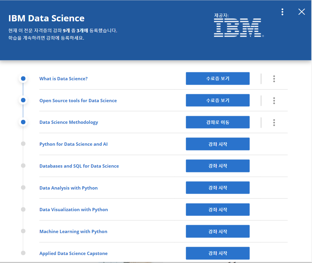 IBM Data Science라는 수업을 발견하게 되었습니다.